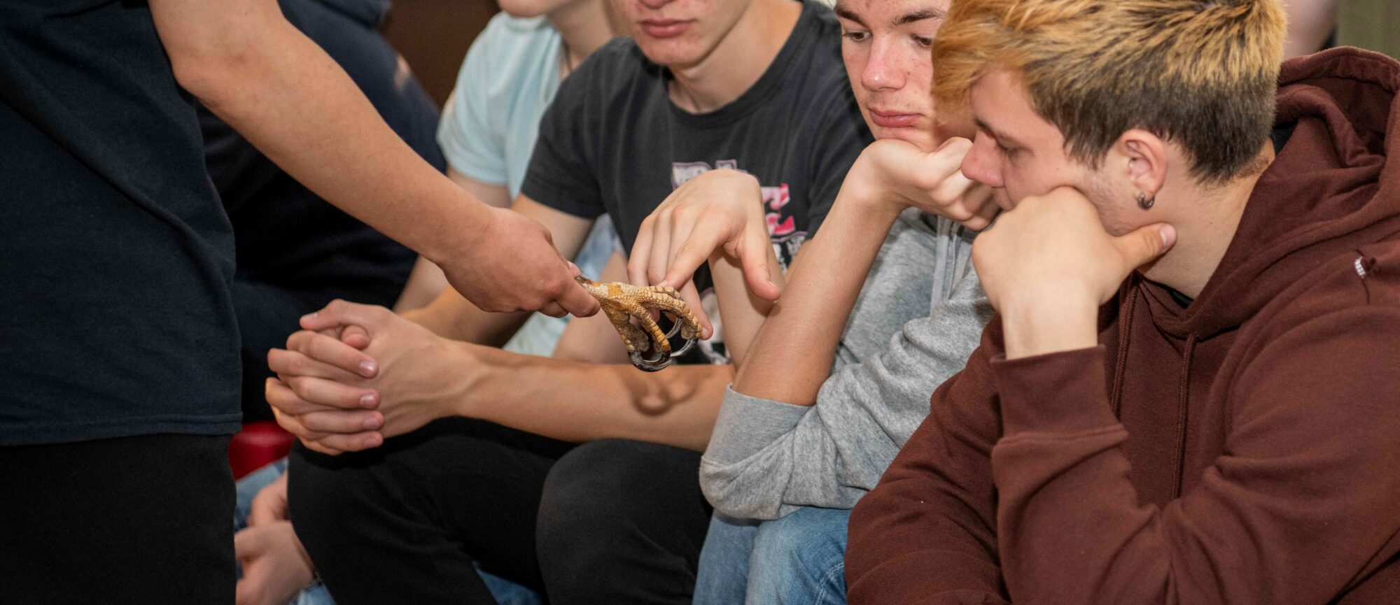 Na rokovalnici potipamo rogelj in potežkamo jelenov rog, ogledamo si zobe volka, pobožamo lisičji kožuh, pokukamo v kosovo gnezdo, občutimo zamah kanjinih peruti, otipamo letalna peresa in še kaj …