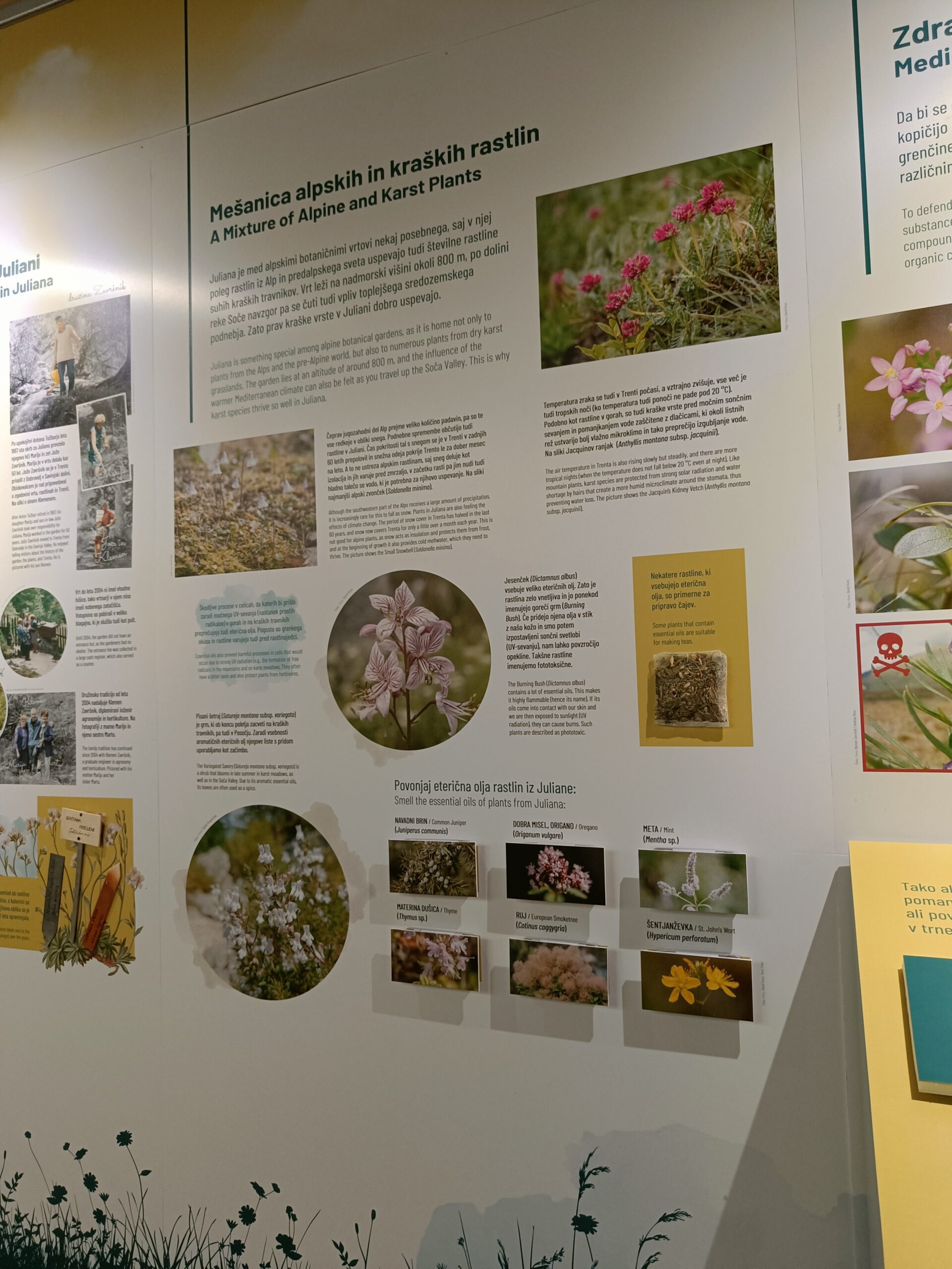Na razstavi je predstavljen virtualni sprehod po vrtu v različnih letnih časih, predvajani pa so tudi izseki iz filma Juliana – botanični biser v osrčju Julijskih Alp. Za otroke so na voljo štampiljke z motivi rastlin iz Juliane in listi z nalogami.