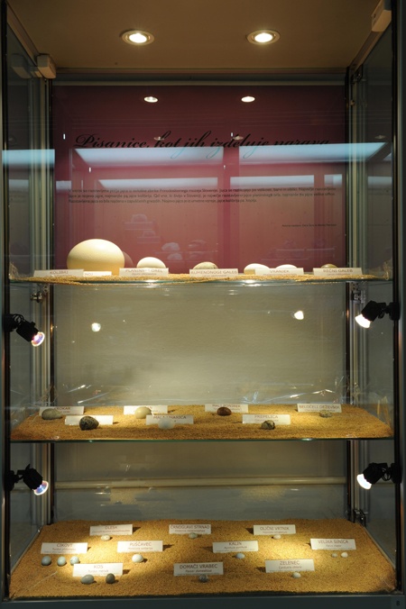V vitrini so razstavljena ptičja jajca iz oološke zbirke Prirodoslovnega muzeja Slovenije. Jajca se razlikujejo po velikosti, barvi in obliki. Največje razstavljeno jajce je belo nojevo jajce, najmanjše pa jajce kolibrija. Razstavljena so tudi jajca vrst, ki živijo v Sloveniji. Od teh je največje jajce planinskega orla. Ogledate si lahko tudi jajca cikovta, beločelega deževnika, velike sinice, krokarja, male uharice, kosa, malega ponirka in drugih. Presenečeni boste, kakšno paleto barv in vzorcev uporablja narava!
