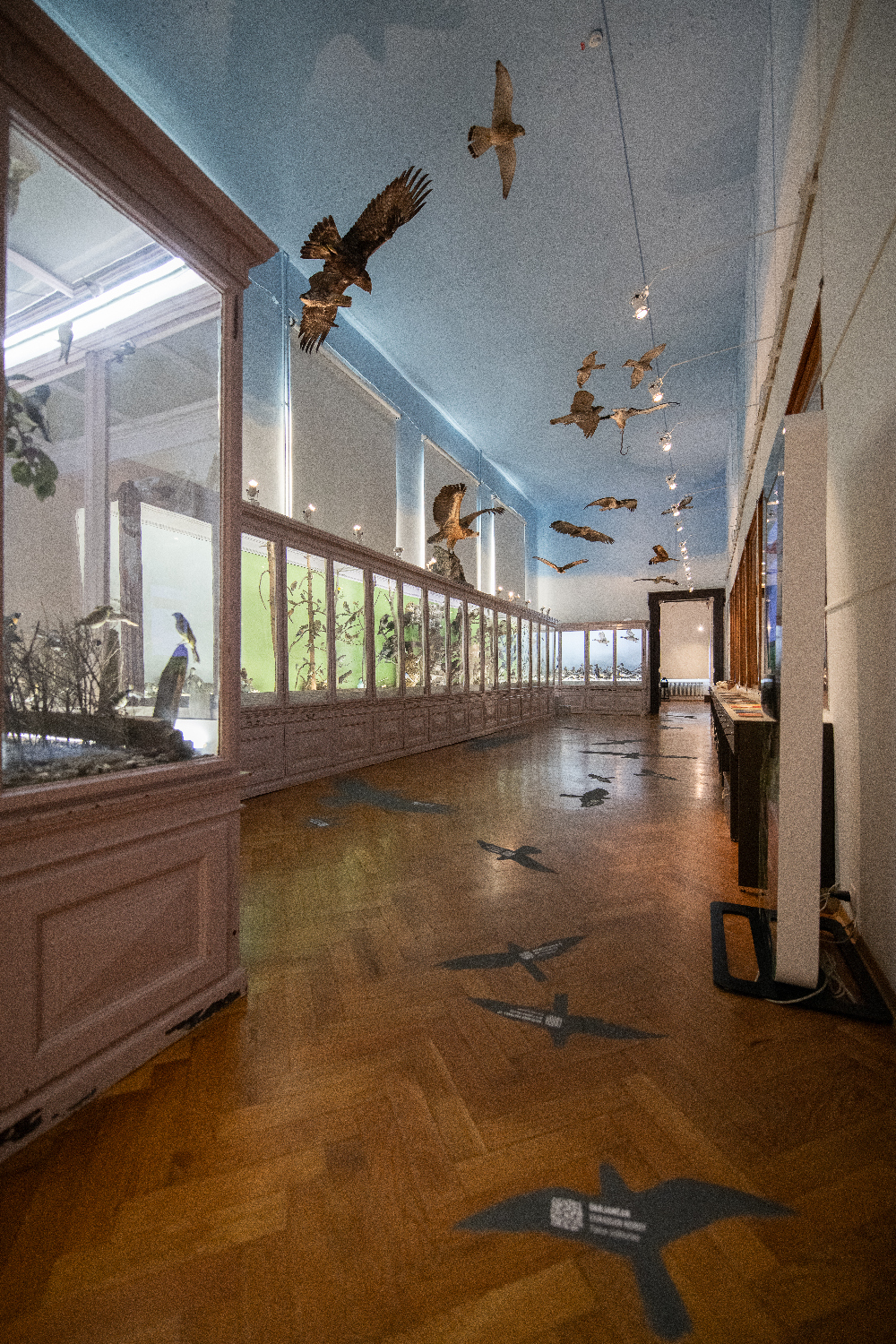 Zdaj tudi na muzejskem nebu. Sence, ki jih mečejo na tla, smo opremili z imeni in QR kodami, ki razkrivajo podrobnosti o njihovem določanju, značilnostih, življenju, prehrani, razširjenosti, ogroženosti in zgodovini odkrivanja. Novo stalno razstavo smo poimenovali ujedarij. Z njim dvigamo ptice v nebo in človekov pogled prav tako. Tako kot mora biti.